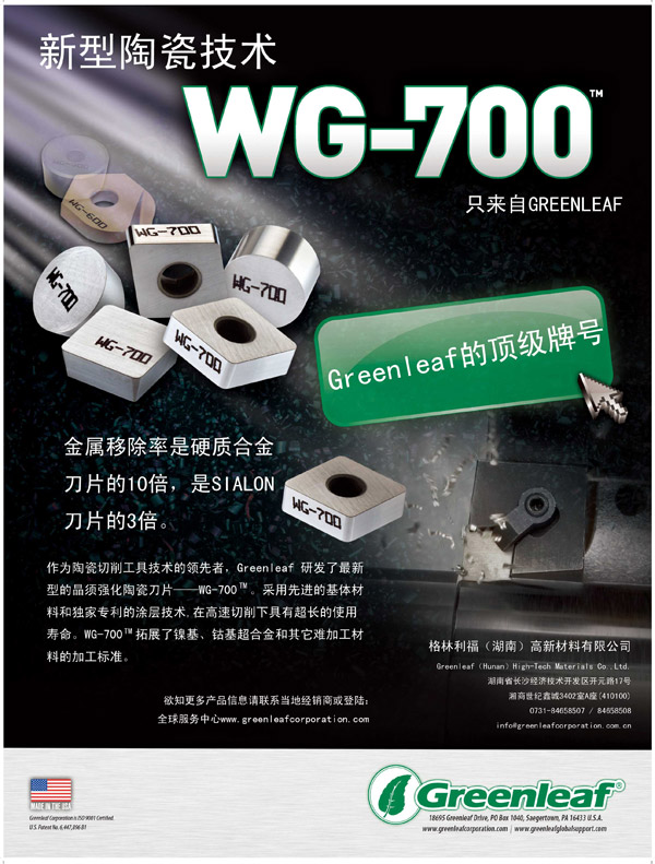 WG700TM是全新的涂層晶須強(qiáng)化陶瓷刀片,以最優(yōu)化的晶須結(jié)構(gòu),極大地增強(qiáng)了基體的抗裂性和耐磨性,并加以最新專利的納米級(jí)“金箔”涂層,全面提高了刀片的整體強(qiáng)度。WG700TM具有耐高溫、耐磨損、抗氧化及耐腐蝕的特性,以其高強(qiáng)度、耐磨損、抗機(jī)械沖擊等優(yōu)勢(shì)而遠(yuǎn)超其他晶須陶瓷刀片。